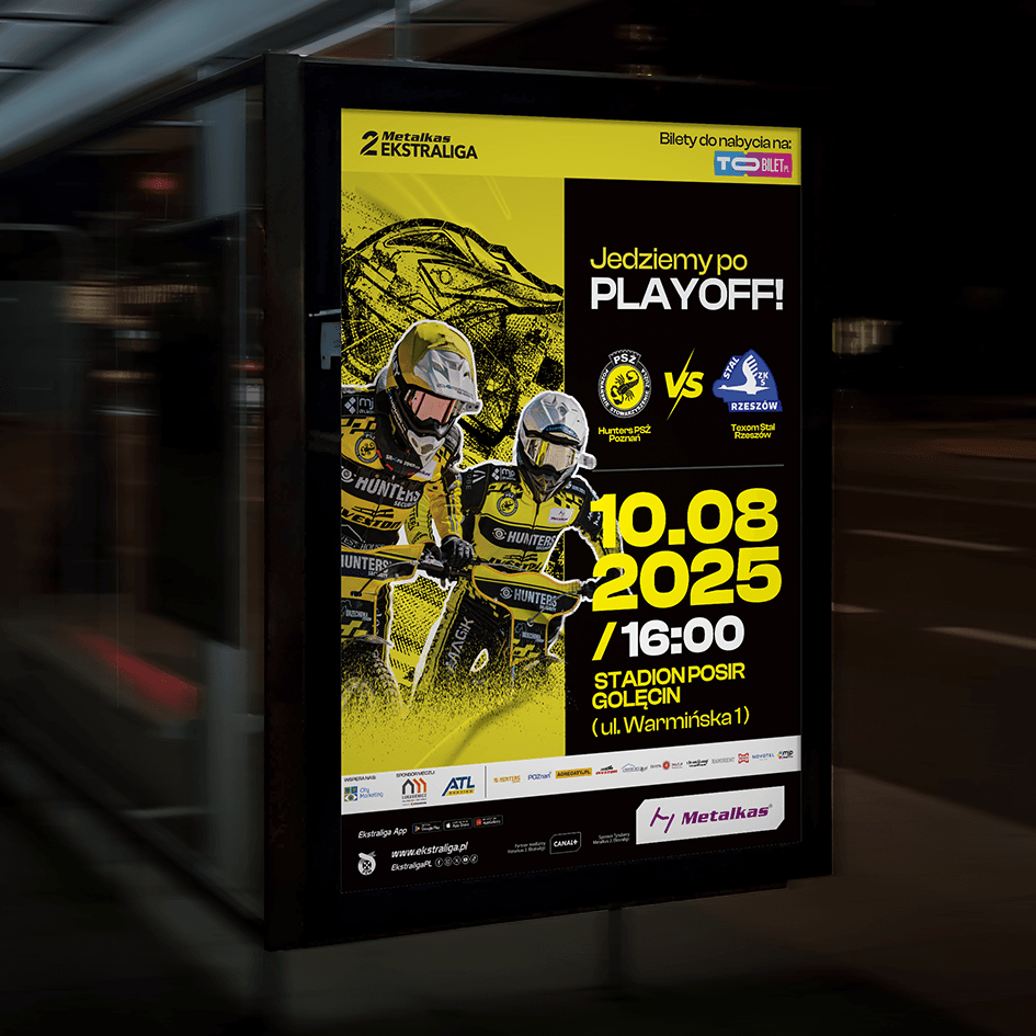 Nasze wspólne działania rozpoczęły się wraz z inauguracją ligowego sezonu 2025 (na poziomie 2. Metalkas Ekstraligi). Już od pierwszego domowego pojedynku kibice poznańskich „Skorpionów” mogli zobaczyć efekty pracy naszej agencji.