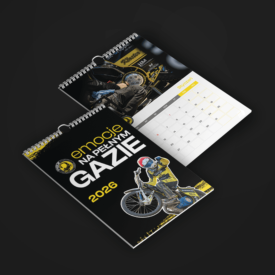 Ślad naszej współpracy widać też w ofercie merchandisingowej klubu z Poznania. Fani żużla i poznańskich Skorpionów mogą wyrażać swoje przywiązanie do zespołu każdego dnia, m.in. za sprawą klubowych gadżetów. Wśród nich są np. kalendarze na 2026 rok, zaprojektowane przez naszą agencję.